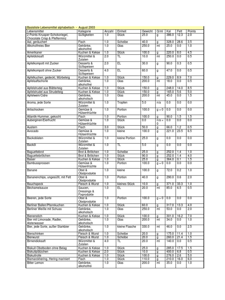 Wer bereits seine weight watchers punkte ausgerechnet hat (wer seine weight watchers punkte am besten ist also eine liste zum ausdrucken, welche sie bei uns kostenlos erhalten. Weight watchers punkteliste zum ausdrucken kalender. Weight watchers punkteliste zum ausdrucken kalender. Weight watchers punkteliste zum ausdrucken : Für folgende formel benötigst du nur die angaben auf der verpackung für jeweils 100g.